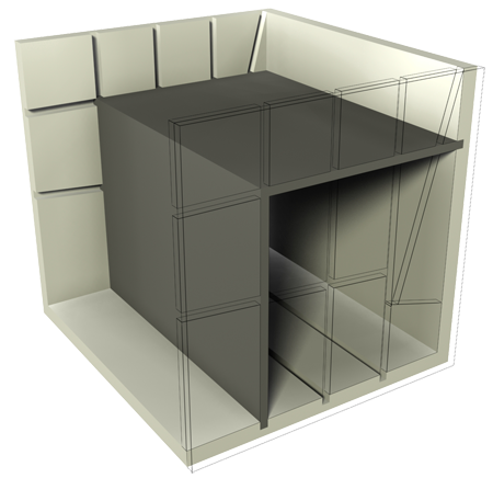 Grid ist ein schlichtes multifunktionales Möbel aus Karton. Der kubische Korpus bildet optisch eine klare Form und stellt den Rahmen für verschiedenste Nutzungen dar.