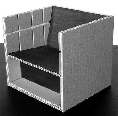 Die einfache und flexible Konstruktion ermöglicht die Nutzung des Kartonmöbels