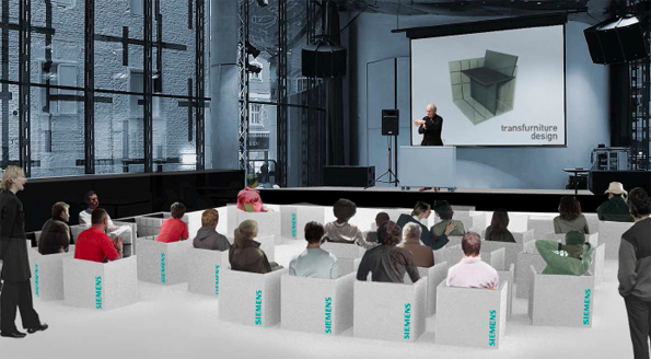 Eventmöbel und Werbeträger bei Vorträgen und Ausstellungen an.